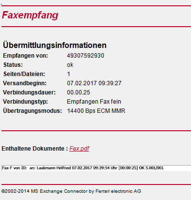 Fax zur Gegenstelle sind in Ordnung.