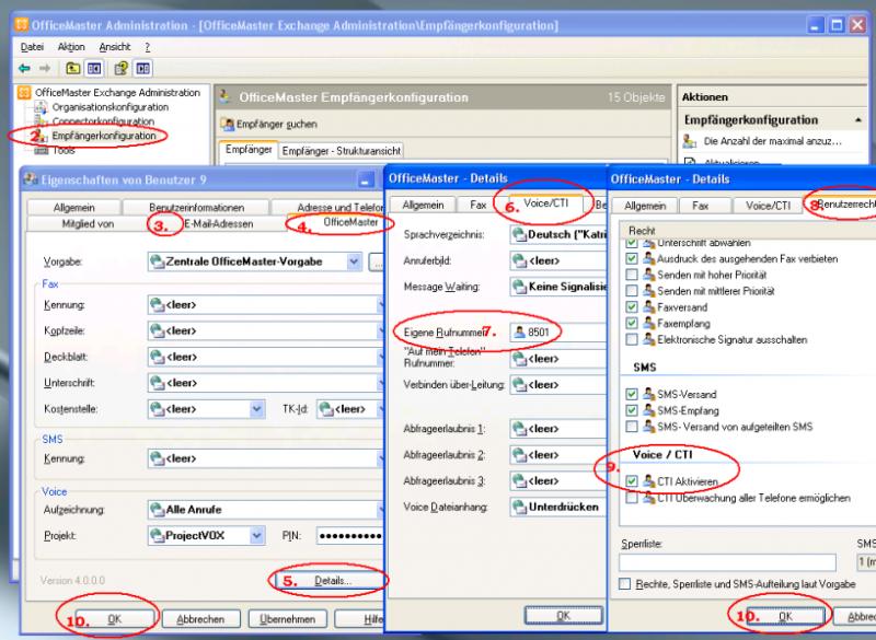 - OfficeMaster Exchange-Verwaltung öffnen (Startmenü -> Programme -> OfficeMaster)
