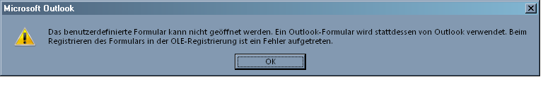 Das benutzerdefinierte Formular kann nicht geöffnet werden.