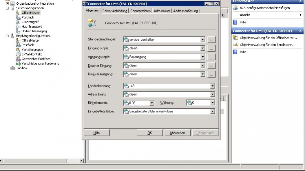 Leider kann unter Serverkonfiguration -> OfficeMaster -> Connector for UMS keine SMTP Adresse oder auch kein Kontakt angegeben werden.