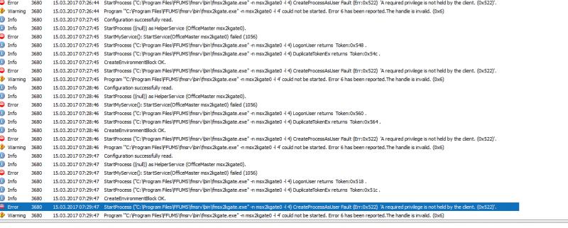 1. CreateProcessAsUser Fault (Err:0x522) "A required privilege is not Held by the Client. (0x522)"